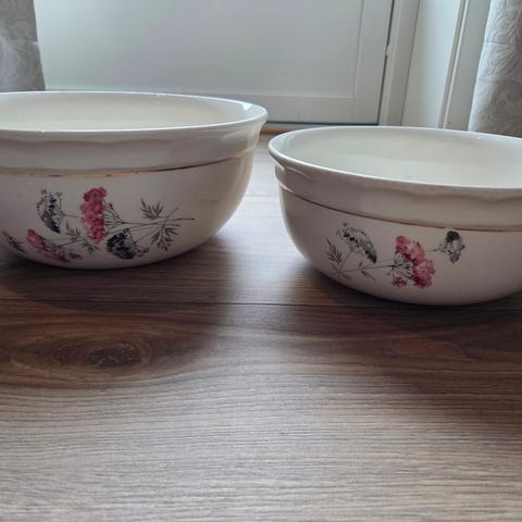 6stk dessertskåler fra Figgjo selges samlet for 600kr. Diameter 17.5cm. De har bruksspor, men er i fin stand.