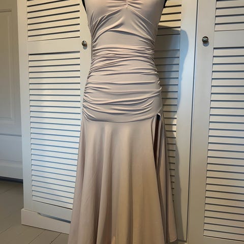 Tynne stropper og fin rygg, i beige farge med litt glitteret materiale. Fra New Look.