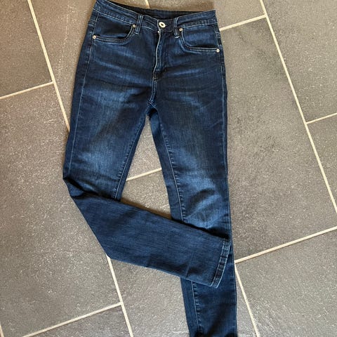 Pent brukt Kine fold jeans fra Floyd selges rimelig. Str. 28/26. Bretten nede er ikke fastsydd, og kan brettes ned (se bilde).