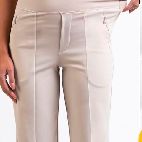 Stoff bukse med stretch. Glidelås nederst i bena. Str M