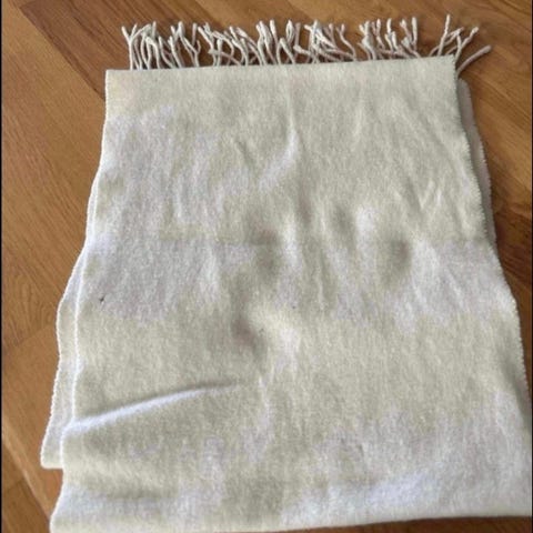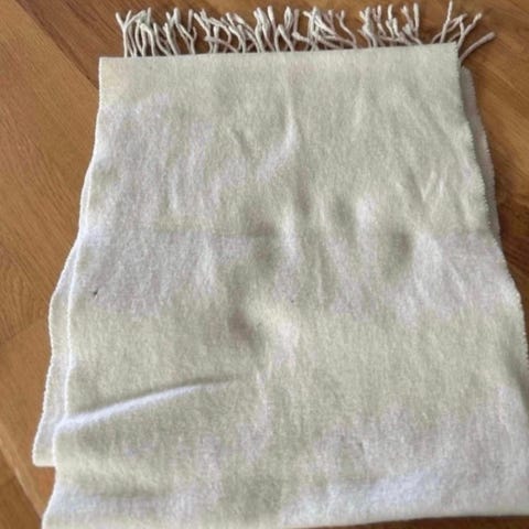 Skjerf: Lengde 115 cm, bredde 14 cm
