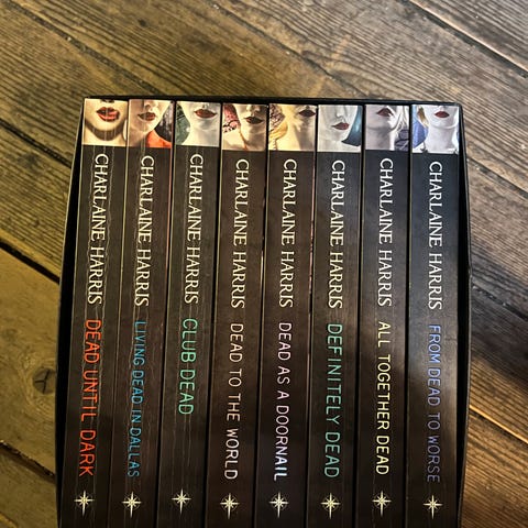 Jeg selger her de 8 første bøkene i Sookie Stackhouse True Blood-serien.