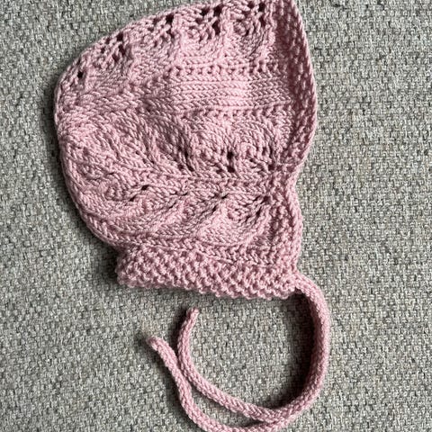 Søt hjemmestrikket kyse i mørk blå og hvit. Strikket i myk merinoull.