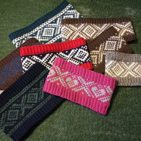 Håndstrikket pannebånd i viking Garn Alpaca Storm