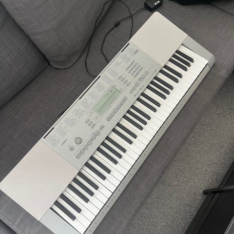 Pent brukt keyboard. Med mange melodier som kan lære deg å spille og med lysende tangenter.