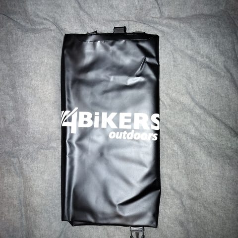 Stor bag i kraftig og solid materialet. «Gummiaktig» stoff. Stoffet er vanntett, men kan ikke garantere at sømmene er det.