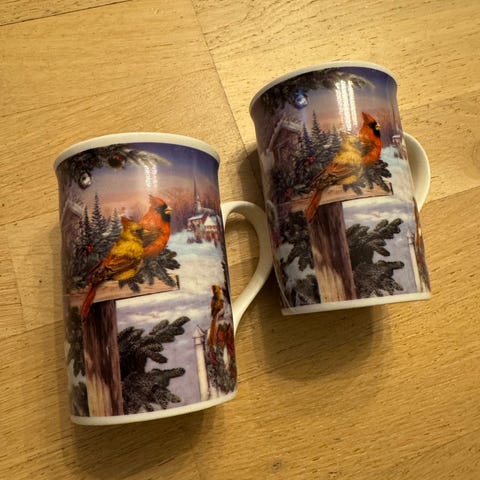 Selger to stk «Christmas Magic» lattekopper fra Perfect Home. De er produsert i høykvalitets-porselen.