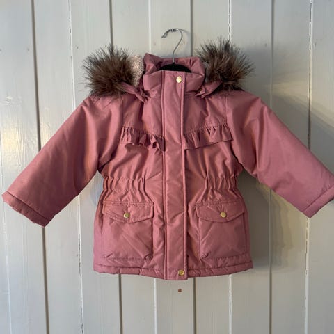 Pen og lite brukt vinterjakke til jente fra Lindex. Str 98 (2-3 år). Reflex detaljer foran og bak.