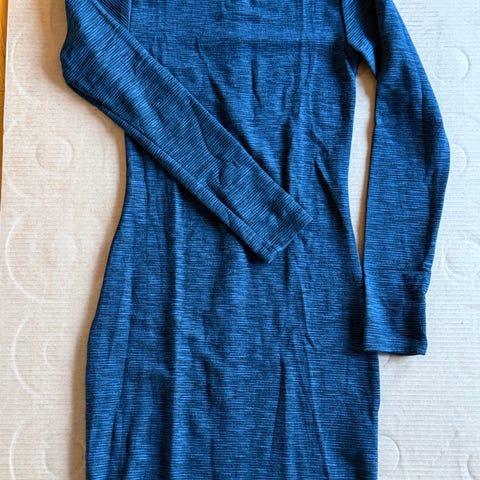Myk og feminin, figurnær kjole fra Superdry. Varmt, stretchy stoff, perfekt nå til høsten/vinteren. I viskose/polyester. Normal i str og i god stand.