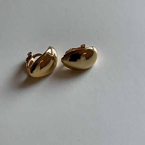 Gullfargede hengeøredobber med dråpe/kulepynt fra Cubus. Ny pris 70
