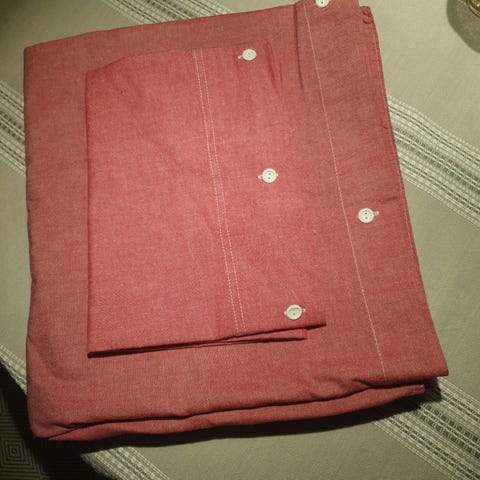 Jeg selger to sett med barnesengetøy, laget av meg.