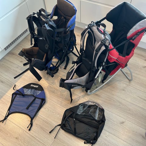 Dessverre mangler posen som skal være under sittedelen (monteres med glidelås). Erfaringen vår var at det var plass til veldig lite i denne posen, og at man på turer uansett måtte bruke flere sekker/andre bæreløsninger for å få plass til alt man trenger av klær, skift, mat osv.