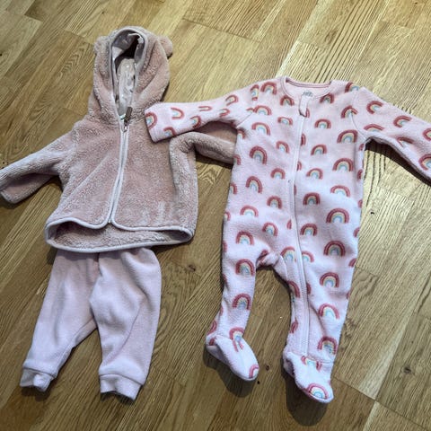 Reflex dress i str 74, lett foret med foter. Gap-fleecedress 18-24 mnd, ulltøfler i samme str. H&M tynn fleecejakke str 86