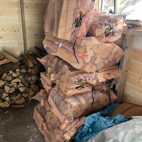 Ved, Vedsekker, Vedsekk, Bjørk, Bjørkeved, Fyring, Vedfyring, Brensel, Peisfyring, Ovn, Vedovn, Bål, Oppvarming, Varme, Espegaard.
