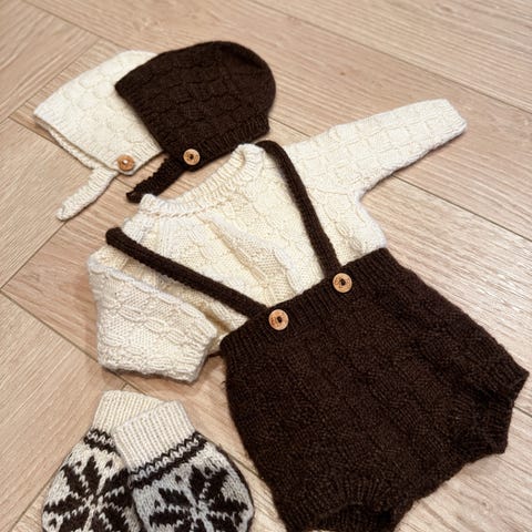 Hjemmestrikket babysett str1-2 år,brukt kun få ganger, ny pris over 1000kr