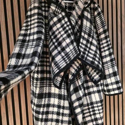 Blå/Sort ull kåpe, str 38. Kun brukt noen få ganger, fremstår som ny.