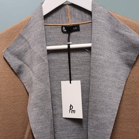 I SAY long cardigan, jakke med to lommer, warm camel farge, lengde 94cm, stretch, viskose/nylon, str. M
