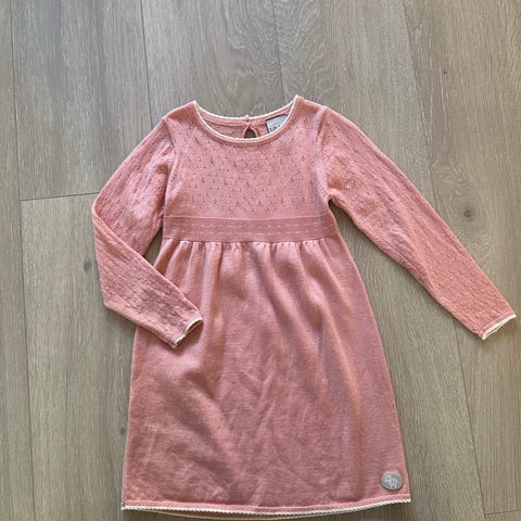 Veldig pent brukt uten flekker eller slitasje, brun-beige ullkjole med rosa kant. Myk og varm