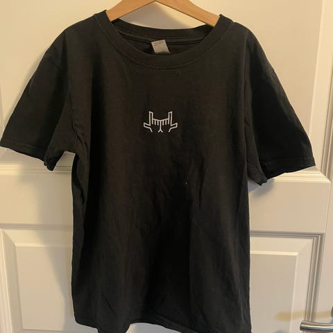 Hvit t-skjorte til gutt i merket black squad str 170 med emblem foran og bak
