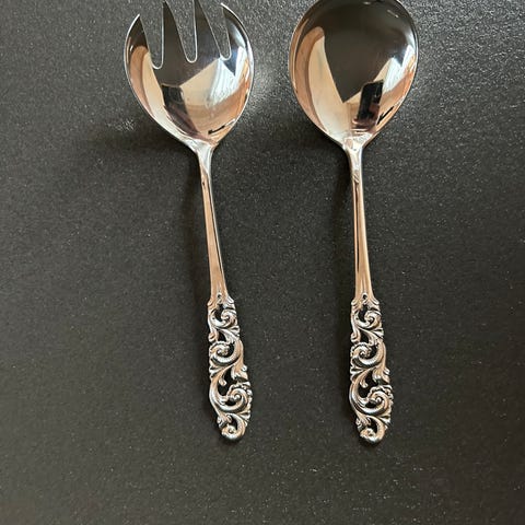 Toni salatgaffel i stål med skaft av horn / bein. Salatgaffelen har et skjeformet blad med tre brede tinder, hvor selve skaftet er i en type bein / horn med flott mønster. Passer også fint til f.eks surkål, potetsalat m.m. Salatgaffele er stemplet Toni, stai-Norway, stainl..steel. Lengde 18,5 cm. Bladet har mål: 6x4,5 cm og høyde 1,5 cm. Vekt: 34g. Selges kr. 25.- Hentes Jevnaker eller sendes. Ved sending tilkommer porto kr. 57.- uten sporing med Posten eller kr. 70.- med sporing med Postnord. Har vipps, men kontanter tas også i mot ved henting.