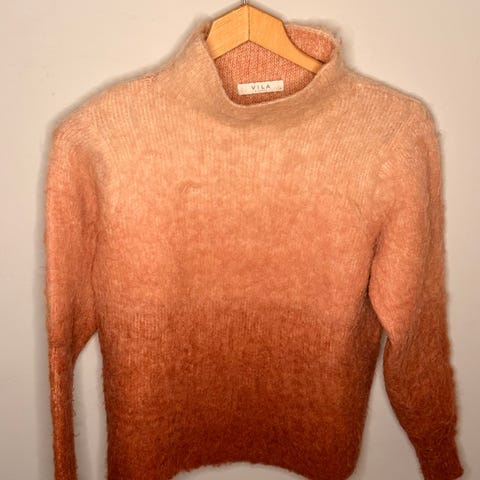 Synes den er god og varm, men liker ikke fargen så mye lengre. Genseren selges veldig billig ettersom den har litt nupper (som sikkert kan fjernes med en nuppefjerner) og et lite hull bak, se siste bilde (siden det er så lite blir det lett å sy den igjen)