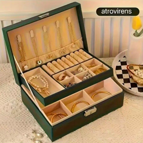 denne smykkevesken gir deg mye. lagringsplass for å sortere ut smykkene dine som øredobber, ringer og halskjeder.