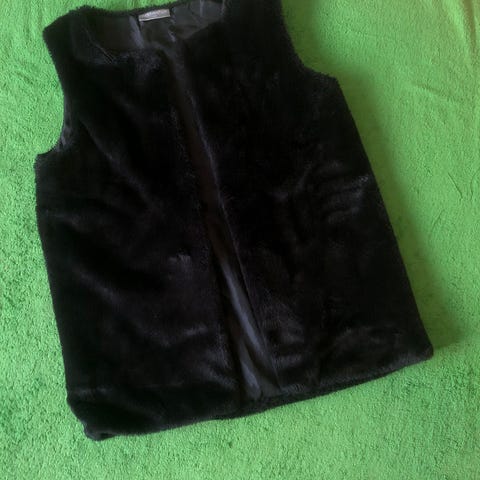 Er vasket skånsomt i maskin. Det hvite stoffet har blitt noe grått, noen svake skyggemerker foran og et lite hull under armen som kan lappes. Smal fasong. Mykt stoff. Ny pris var kr 999.