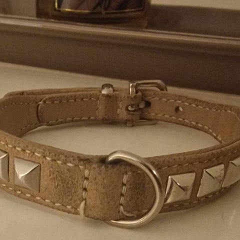 Stilig skinnhalsbånd selges. Passer til valp eller hund av liten størrelse.