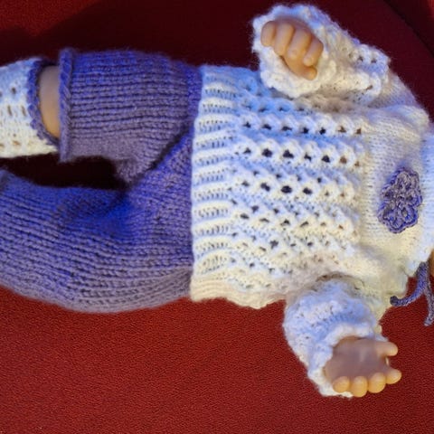 Frost dukke med kjole. Dukken er ca 40 cm høy.