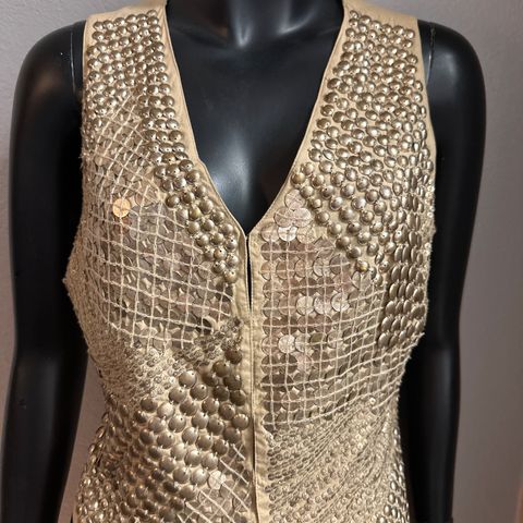 En superflott dressvest med paljetter og perler. Vesten er merket med str.34, Claire er etter min erfaring litt romslige i str., så denne passer en str. S. Ny kostet vesten kr 999.- og jeg har valgt å selger den fordi den er alt for fin til bare å henge i skapet. Håper en ny eier vil få glede av den