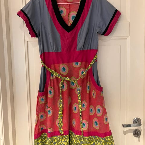 Se min kjole. Fargerikt og fin kjole med geometrisk og retro design str M
