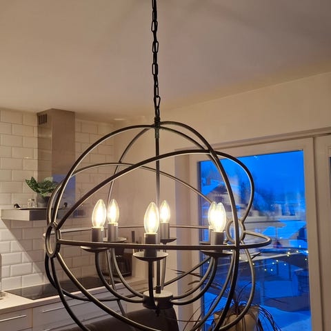 Tre flotte taklamper/takpendler i messing/kobber og sort metall selges. De to minste er ca 16cm brede og 21cm høye, mens den store er ca 27cm bred og 27cm høy. Selve den sorte sokkelen er ikke regnet med i målene. Pene moderne og stilige lamper uten bruksmerker. Spennende geometriske former og mønstre i minimalistisk design. Samme stil som berømte Eglo Carlton takpendel. Fine å henge sammen, f.eks. i en gang eller på et kjøkken. Tilsvarende lamper som selges i designbutikker, Bohus, Skeidar, eller i litt samme stil som lamper fra Tom Dixon, House Doctor eller Kvalitet Diamond kobber rose gold. Se ellers bildene for detaljer. Pærene følger dessverre ikke med, men er E27 hyllevare. Mulig jeg har noe liggende vi kan bli enige om.