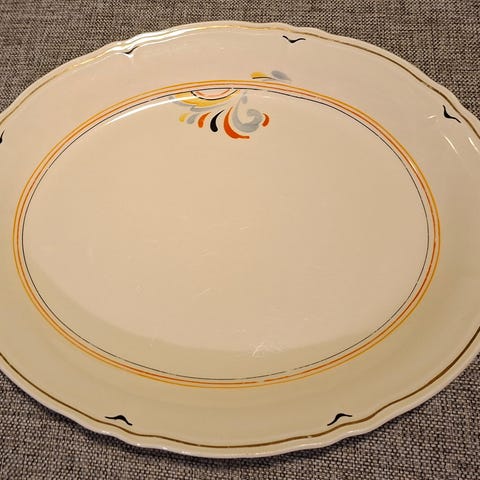Fint retro fat i art deco stil. Disse er populære i Europa. Tilsvarende fat ligger ute til salg på Etsy til ca 500kr.