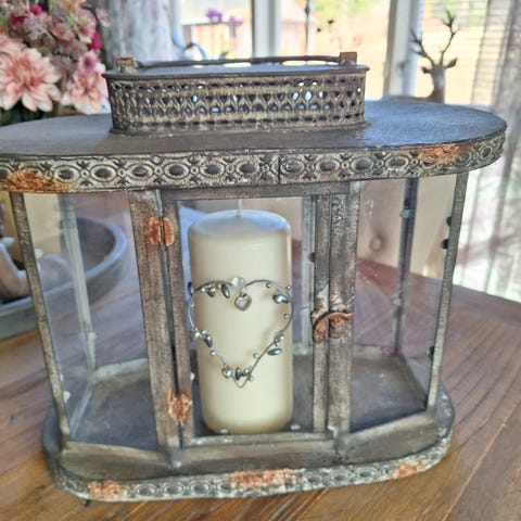 Hengende telyslykt med kjetting.