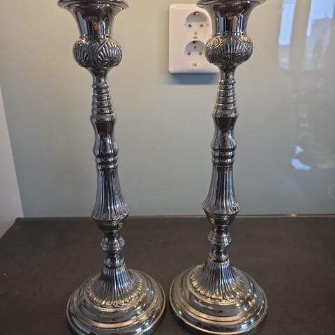 Lysestake sølvfarget metall. Kan sendes.