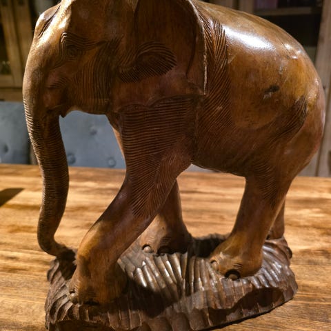 Eldre trefigur , pen stand , usikker på tre sort muligens oliventre, sender gjerne mot porto 69,- postnord eller fiks ferdig