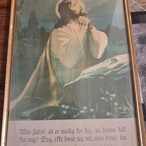 Nydelig gammel metallisk bilde,som hengers på vegen.
