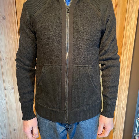 Unik strikkejakke fra J Lindeberg med mange detaljer. Høy krage og lommer.