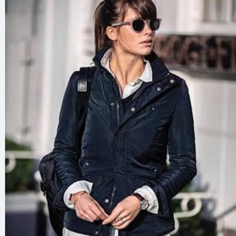 Klassisk jakke fra Nimbus DK, dame str XL. Marineblå skalljakke, pent brukt. Jakken er noe liten i str, og er en L/XL.