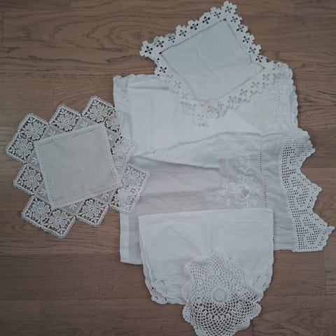 Gamle yndige bordbrikker og et gammelt forkle.