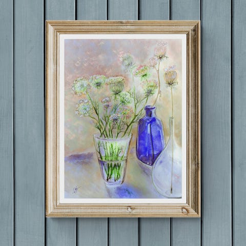 Original håndverk Fineart interiør bilde akvareller vintage bukett tørke planter