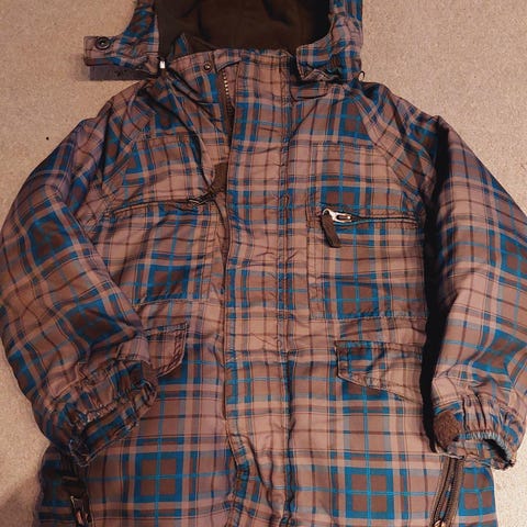 Fin jakke i str 110. Blå med regndråper. God fleece innvendig.