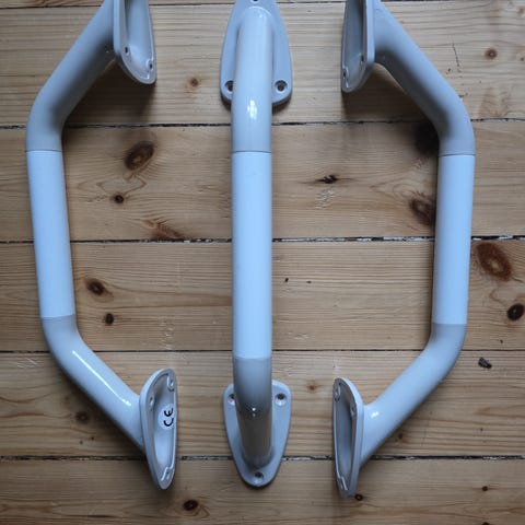 Nye hjelpehåndtak. Selges for 50kr per stykk. I diverse størrelse. På butikken koster over 200 kr. Kan selge billigere hvis du vil kjøpe flere. Kan sende i posten hvis kjøperen betaler frakt. Disse hjelpehåndakt kan brukes i mange områder.
