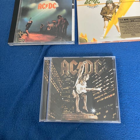 AC/DC Plug Me In DVD samleboks. Utgivelsen består av flere DVD-plater med konsertopptak og liveopptredener fra ulike perioder av bandets karriere. Innholdet inkluderer låter fra 1970- og 1980-tallet samt senere år, med blant annet «High Voltage», «It’s a Long Way to the Top», «Let There Be Rock», «Highway to Hell», «Back in Black» og «For Those About to Rock». Boksen inneholder også et hefte med konsertbilder og informasjon om innspillingene. Dette er en musikkutgivelse i fysisk DVD-format med fokus på rockekonserter og liveopptak fra AC/DC.