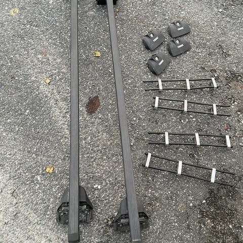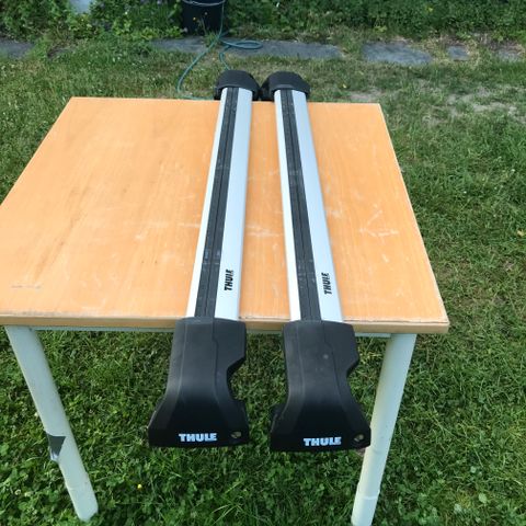 Thule takstativ tverrbjelker laget av aluminium med svart farge. Passer for montering på taket av kjøretøy for transport av ekstra last.