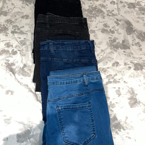 Slim fit jeans med super stretch og høyt liv. I mykt og deilig bomullsmateriale. Med lett vasket farge og effekter på lår. Med lommer i sidene og baklommer. Glidelåsgylf. Benlengde er 77cm.