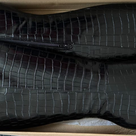 Superfine sorte boots med komfortabel hæl i krokodille imitasjon. Perfekte partysko! Størrelse 38. Materiale: PU. Jeg sender stort sett alltid første virkedag etter mottatt penger for frakt :)