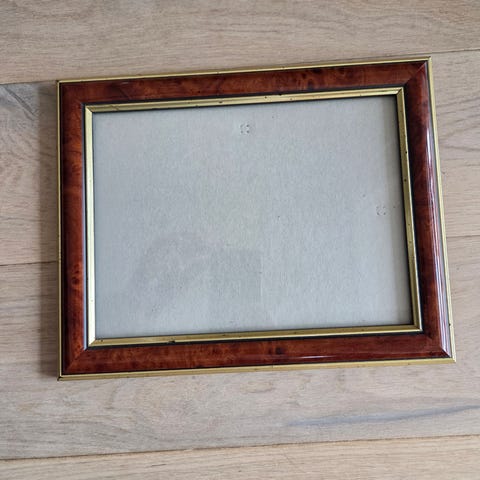 Støtte og oppheng bak. Str ca 17,5 x 22, innermål ca 12 x 17 cm. Sender gjerne med posten