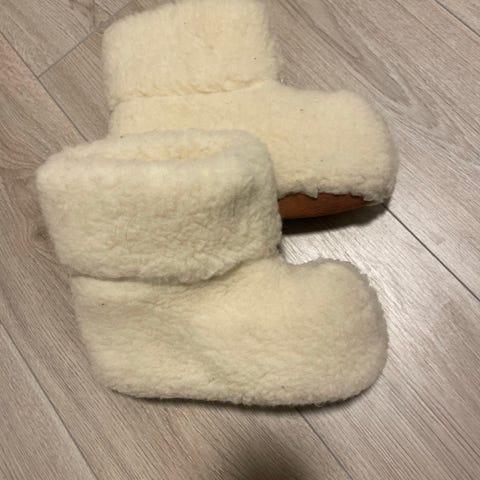 Gode og varme, helt nye tovet ull tøfler selges ca str 16/17.