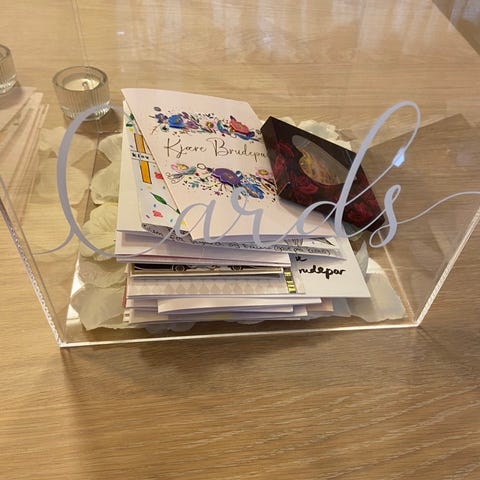 Wooden box for greeting cards with key.